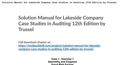 Read Online LAKESIDE COMPANY AUDITING CASES SOLUTION Epub